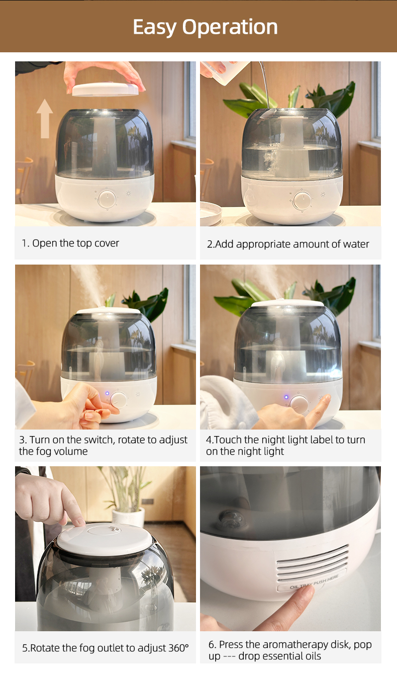 ເຄື່ອງເຮັດຄວາມສາມາດໃນການນໍາໃຊ້ໃນເຮືອນຢູ່ເຮືອນໄຟຟ້າທີ່ມີຄວາມສາມາດໃນເຮືອນໄຟຟ້າຂະຫນາດໃຫຍ່ຂະຫນາດໃຫຍ່ຂອງພວກເຮົາທີ່ມີຄວາມສາມາດໃນການນໍາໃຊ້ໄຟຟ້າ ultrasonic. ມັນອ່ອນກວ່າຄວາມຊຸ່ມຊື່ນທໍາມະດາແລະບໍ່ລົບກວນການສຶກສາຂອງທ່ານ, ເຮັດວຽກແລະພັກຜ່ອນ. ຖັງນ້ໍາໃສ່ຖັງນ້ໍາ, ຖັງນ້ໍາທີ່ສະດວກແລະວ່ອງໄວ, ມີຄວາມໂປ່ງໃສ, ລະດັບນ້ໍາສາມາດເບິ່ງເຫັນໄດ້. nano-west mist 300ml / h, mist ສູງສຸດສາມາດແລ່ນໄດ້ 8h, mist ຕ່ໍາສຸດສາມາດແລ່ນໄດ້ 50h, ສາມາດເພີ່ມການປິ່ນປົວດ້ວຍກິ່ນຫອມຂອງທ່ານ. ຮ່າງກາຍທີ່ຫນ້າຊຸ່ມຊື່ນແມ່ນມີແສງສະຫວ່າງໃນຕອນກາງຄືນທີ່ເປັນເອກະລາດ, ສະນັ້ນໃນຕອນກາງຄືນຂອງທ່ານເຕັມໄປດ້ວຍຄວາມປອດໄພ.